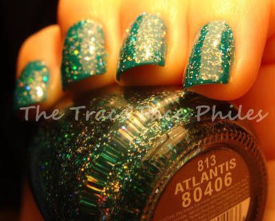 Finally I get to try out Atlantis. It has been sitting in my untrieds for quite some time. I kinda forgot about it, lol shame on me! I thought it would look great layered over yesterday's post Milani Fresh Teal. I was right! Its a great combination! I added 2 coats of Atlantis to the existing 2 coats of Fresh Teal. Followed by 1 coat of Gelous and then 1 coat of Orly Wont Chip.