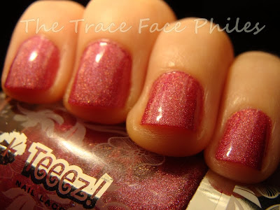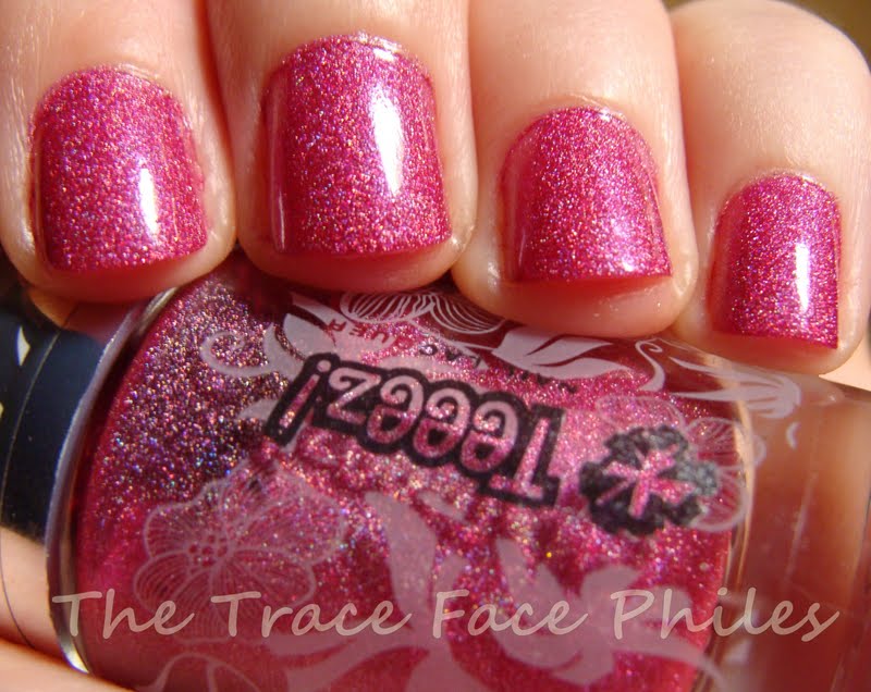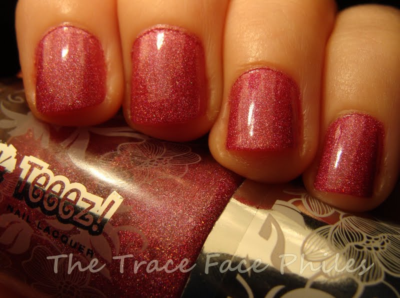 This week I want to show you one of the polishes I received in a swap with my friend Kati who lives in The Netherlands. She sent me a ton of goodies that I normally would never be able to find here in the US. Including this pink beauty, Teeez Smooth. Apparently, Smooth comes in 2 different versions. I was lucky enough to get the holo version! YAY thanks Kati! Teeez cosmetics are a Dutch brand found in certain European countries. You can view their website by clicking HERE.