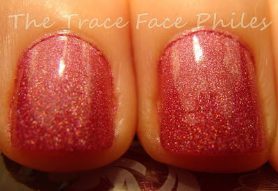 Smooth is a holographic polish that is designed to give full coverage with one coat. I really like this nail polish and I want more of them LOL. It went on really nicely and is pretty shade of pink. You can definitely see a rainbow when in the sun! Smooth also dried relatively quickly. I love the sparkle!