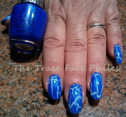 After one coat of Essie To Dry For, I added 1 coat of OPI Blue Shatter.
